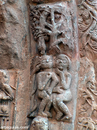 Presto atención, y descubro todo tipo de animales reales y fantásticos, tales como aves, leones, arpías, esfinges o grifos, además de figuras de caballeros, una representación de Adán y Eva en el pecado original...