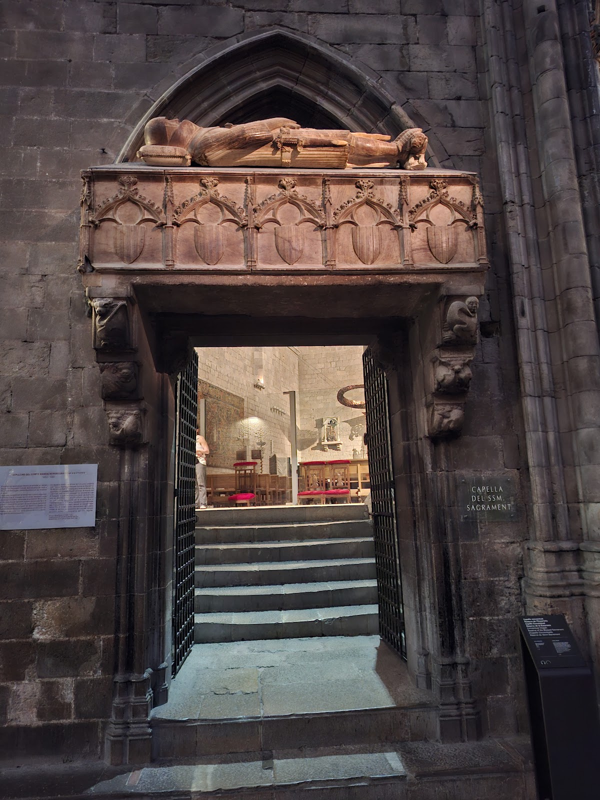 Sepulcro de Ermessenda de Carcassona y Ramón Berenguer II, Cap d’Estopes, bisnieto de Ermesenda, con su spulcro encima de la puerta de la sacristía